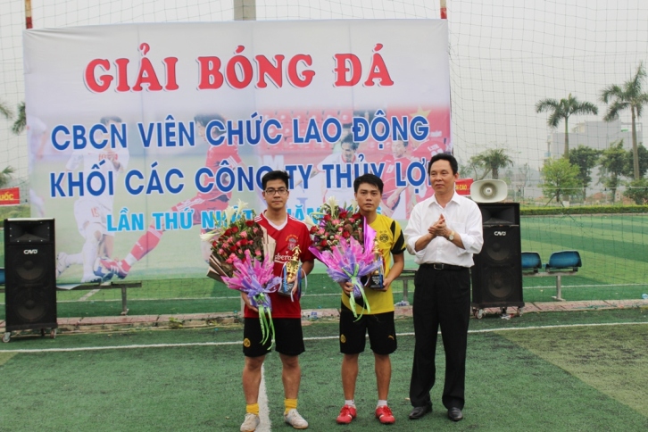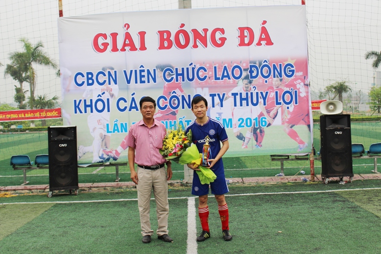 Đồng chí Đường Ngọc Dung-Giám đốc Công ty thủy lợi Phúc Yên trao giải Nhì cho đội bóng Công ty TNHH MTV