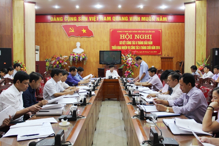 Sáng ngày 22/7/2016, Công ty TNHH Một thành viên Thủy lợi Liễn Sơn tổ chức Hội nghị sơ kết công tác 6 tháng đầu năm, triển khai nhiệm vụ công tác 6 tháng cuối năm 2016. Đồng chí Nguyễn Gia Quyền - Chủ tịch Công ty chủ trì Hội nghị. Dự Hội nghị có các đồng chí trong Ban lãnh đạo Công ty, Trưởng phó các phòng chức năng,lãnh đạo các xí nghiệp thủy lợi, trạm trực thuộc Công ty.