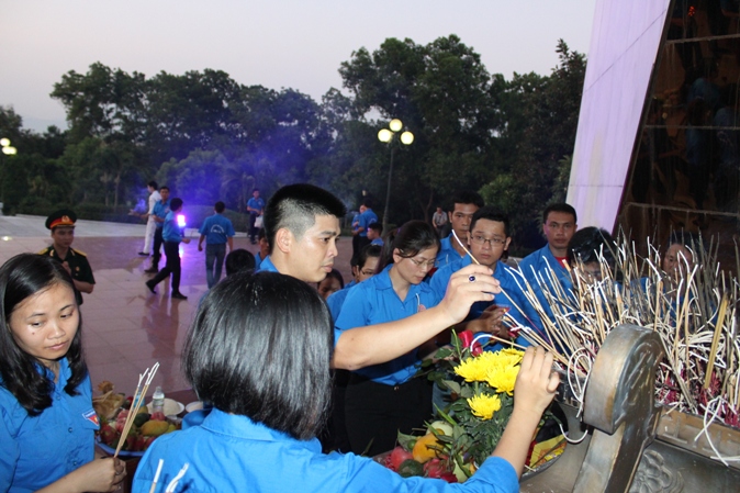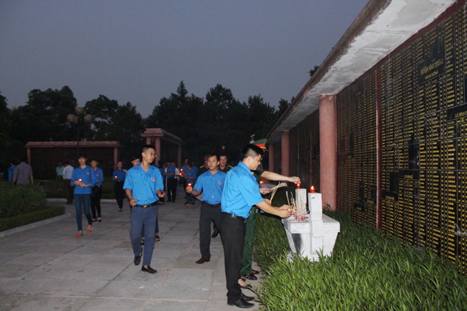 Trong không khí thành kính, thiêng liêng, các đoàn viên thanh niên đã thành kính thắp nén tâm nhang, dành một phút mặc niệm và thắp hương ở từng phần mộ các liệt sĩ đang yên nghỉ tại đây để tưởng nhớ công lao to lớn của các anh hùng liệt sĩ đã hy sinh trong sự nghiệp giải phóng dân tộc và bảo vệ Tổ quốc. Trước anh linh của các anh hùng liệt sĩ, các đoàn viên thanh niên xin hứa sẽ đoàn kết, vượt qua mọi khó khăn, thách thức, giữ vững lập trường, tư tưởng, niềm tin, không ngừng rèn luyện, phấn đấu và hoàn thành xuất sắc nhiệm vụ, để xây dựng quê hương ngày càng giàu đẹp xứng đáng với sự hy sinh cao cả của lớp lớp cha anh.