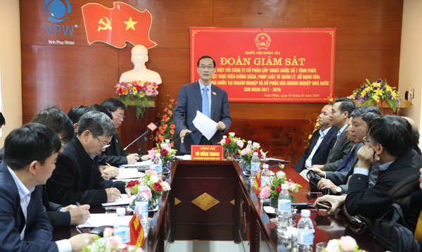 Kết luận buổi giám sát tại công ty cổ phần cấp thoát nước số 1 Vĩnh Phúc, đồng chí Vũ Hồng Thanh cho rằng việc cổ phần hóa của công ty đang tạo ra những chuyển biến tích cực. Tuy nhiên, việc thoái vốn tại công ty không có nhiều thay đổi, lợi tức không cao nên làm chậm tiến độ kế hoạch thoái vốn. Đồng chí cũng đề nghị UBND tỉnh quan tâm hơn đến lộ trình thực hiện thoái vốn; công ty cần cung cấp thêm hồ sơ, đánh giá tài sản khi đưa ra đấu giá. Sau khi hoàn thành thoái vốn cần quan tâm đảm bảo quyền lợi, đời sống của công nhân và người lao động cũng như hoạt động của các tổ chức đảng, đoàn thể.
