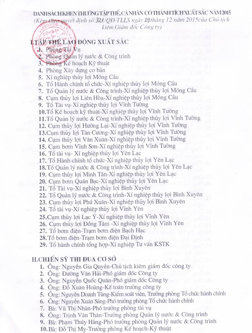 Quyết định tặng danh hiệu thi đua cho các tập thể, cá nhân đã hoàn thành xuất sắc nhiệm vụ năm 2015