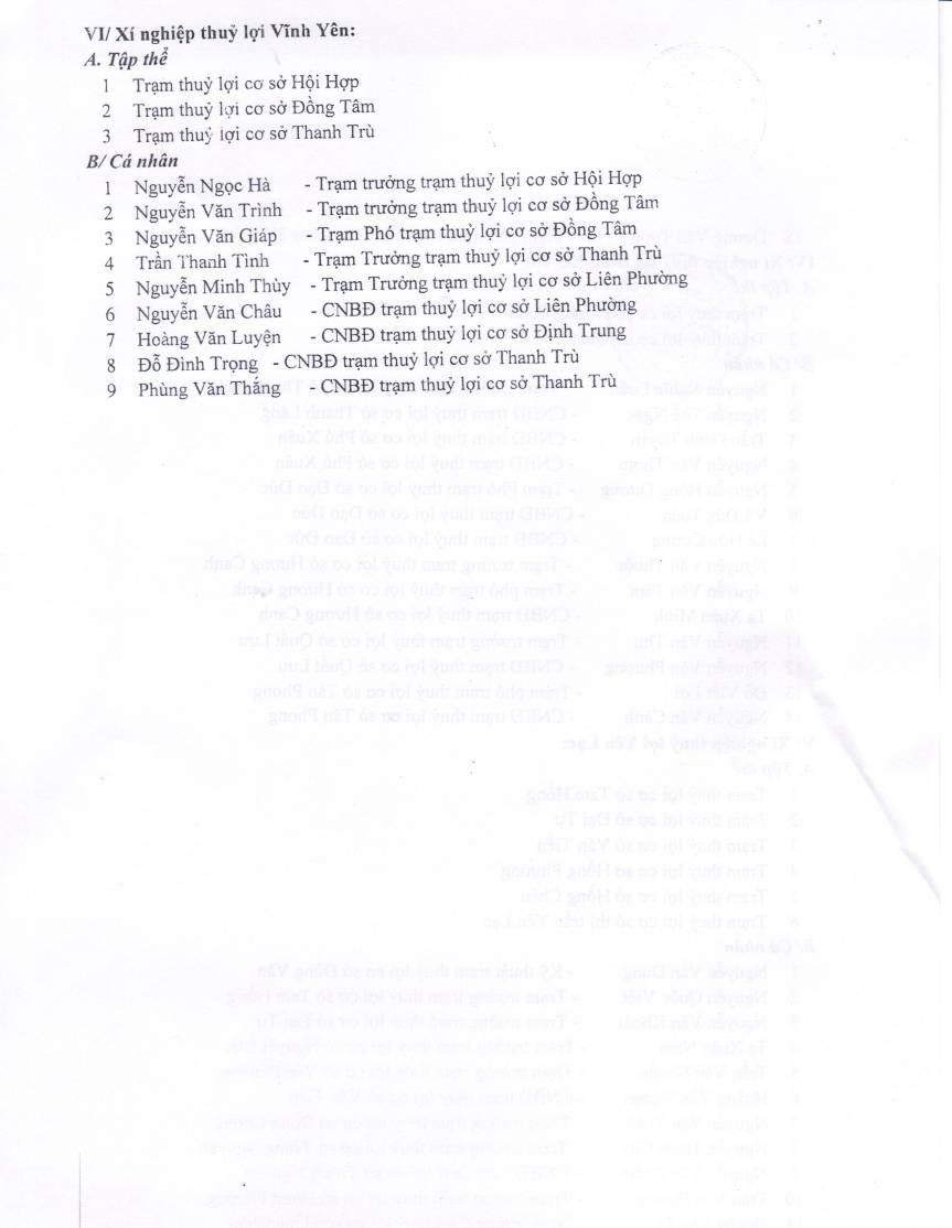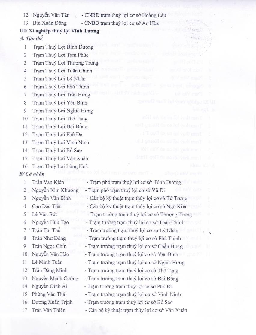 Quyết định khen thưởng cho các tập thể, cá nhân trạm thủy lợi cơ sở đã hoàn thành xuất sắc nhiệm vụ năm 2015