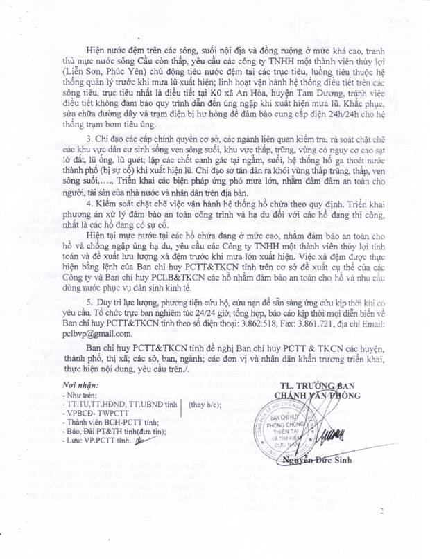 Công điện số 06/CĐ-VP hồi 20h00 ngày 12/8/2016