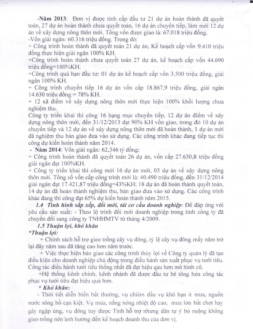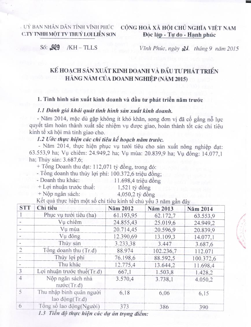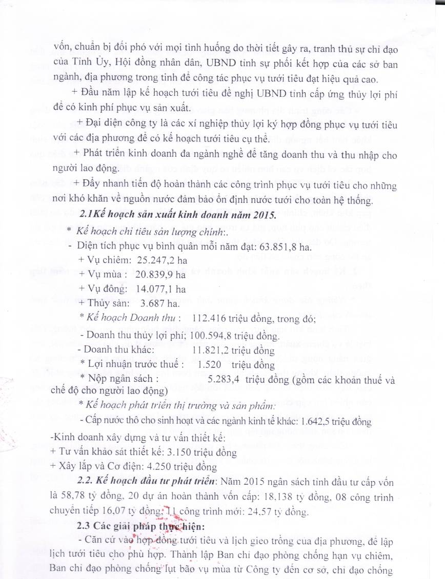 Kế hoạch sản xuất kinh doanh và đầu tư phát triển năm 2015
