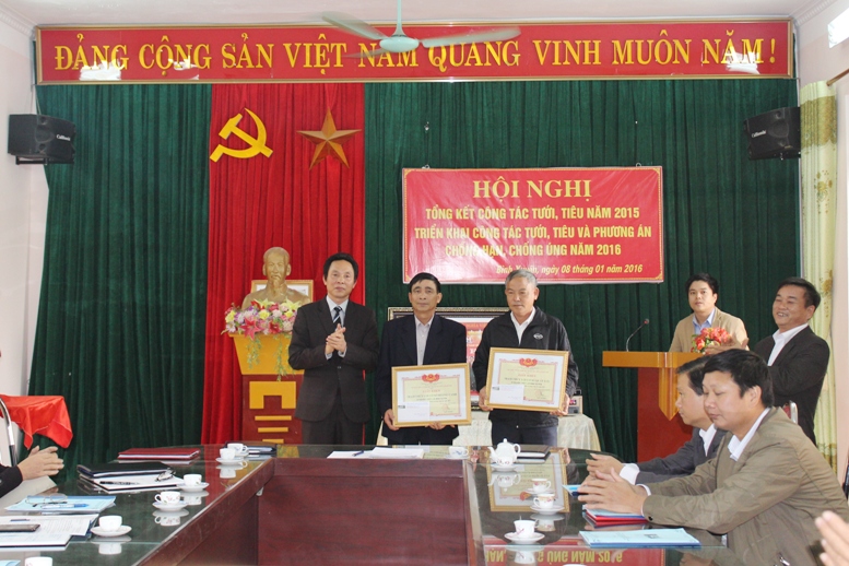 Đ/c Nguyễn Gia Quyền trao giấy khen và phần thưởng cho các Trạm thủy lợi