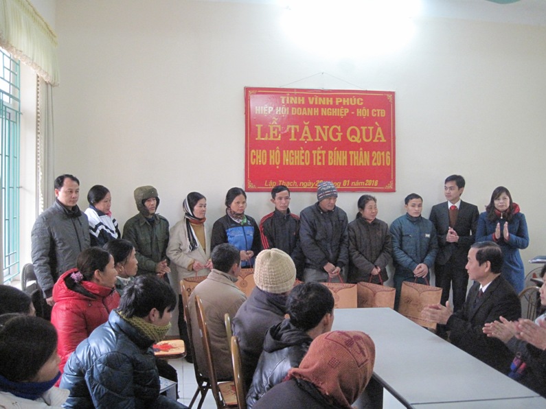 Thực hiện chương trình “Tết vì người nghèo” xuân Bính Thân 2016, sáng ngày 26/1/2016, đồng chí Nguyễn Gia Quyền - Chủ tịch kiêm giám đốc Công ty TNHH MTV Thủy lợi Liễn Sơn đi trao quà tết cho các hộ nghèo của huyện Lập Thạch.