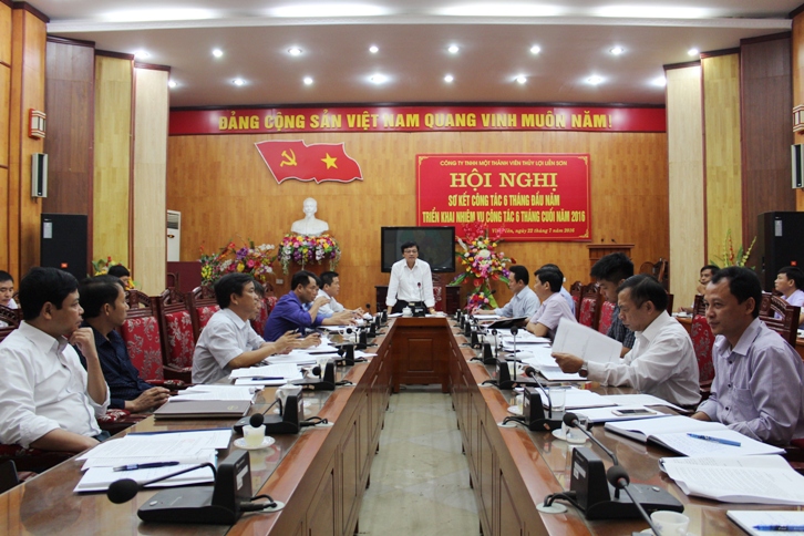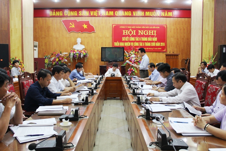 Sáng ngày 22/7/2016, Công ty TNHH Một thành viên Thủy lợi Liễn Sơn tổ chức Hội nghị sơ kết công tác 6 tháng đầu năm, triển khai nhiệm vụ công tác 6 tháng cuối năm 2016. Đồng chí Nguyễn Gia Quyền - Chủ tịch Công ty chủ trì Hội nghị. Dự Hội nghị có các đồng chí trong Ban lãnh đạo Công ty, Trưởng phó các phòng chức năng,lãnh đạo các xí nghiệp thủy lợi, trạm trực thuộc Công ty.