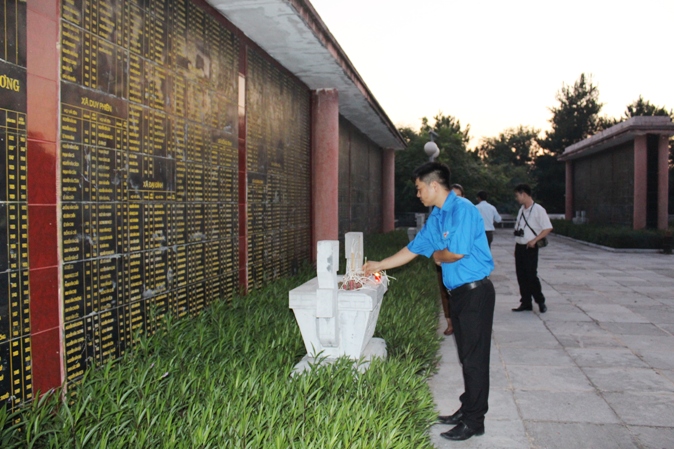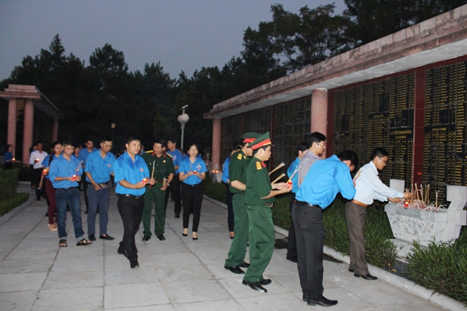 Trong không khí thành kính, thiêng liêng, các đoàn viên thanh niên đã thành kính thắp nén tâm nhang, dành một phút mặc niệm và thắp hương ở từng phần mộ các liệt sĩ đang yên nghỉ tại đây để tưởng nhớ công lao to lớn của các anh hùng liệt sĩ đã hy sinh trong sự nghiệp giải phóng dân tộc và bảo vệ Tổ quốc. Trước anh linh của các anh hùng liệt sĩ, các đoàn viên thanh niên xin hứa sẽ đoàn kết, vượt qua mọi khó khăn, thách thức, giữ vững lập trường, tư tưởng, niềm tin, không ngừng rèn luyện, phấn đấu và hoàn thành xuất sắc nhiệm vụ, để xây dựng quê hương ngày càng giàu đẹp xứng đáng với sự hy sinh cao cả của lớp lớp cha anh.